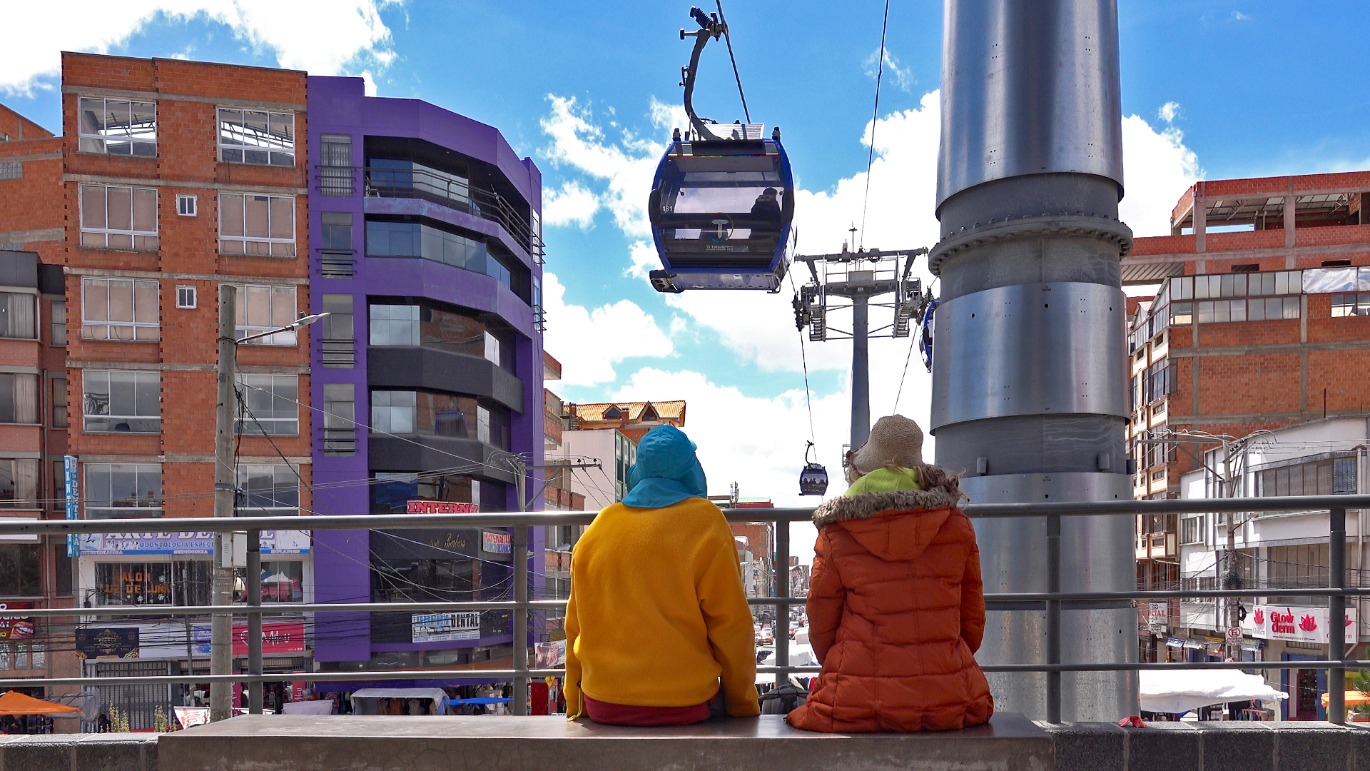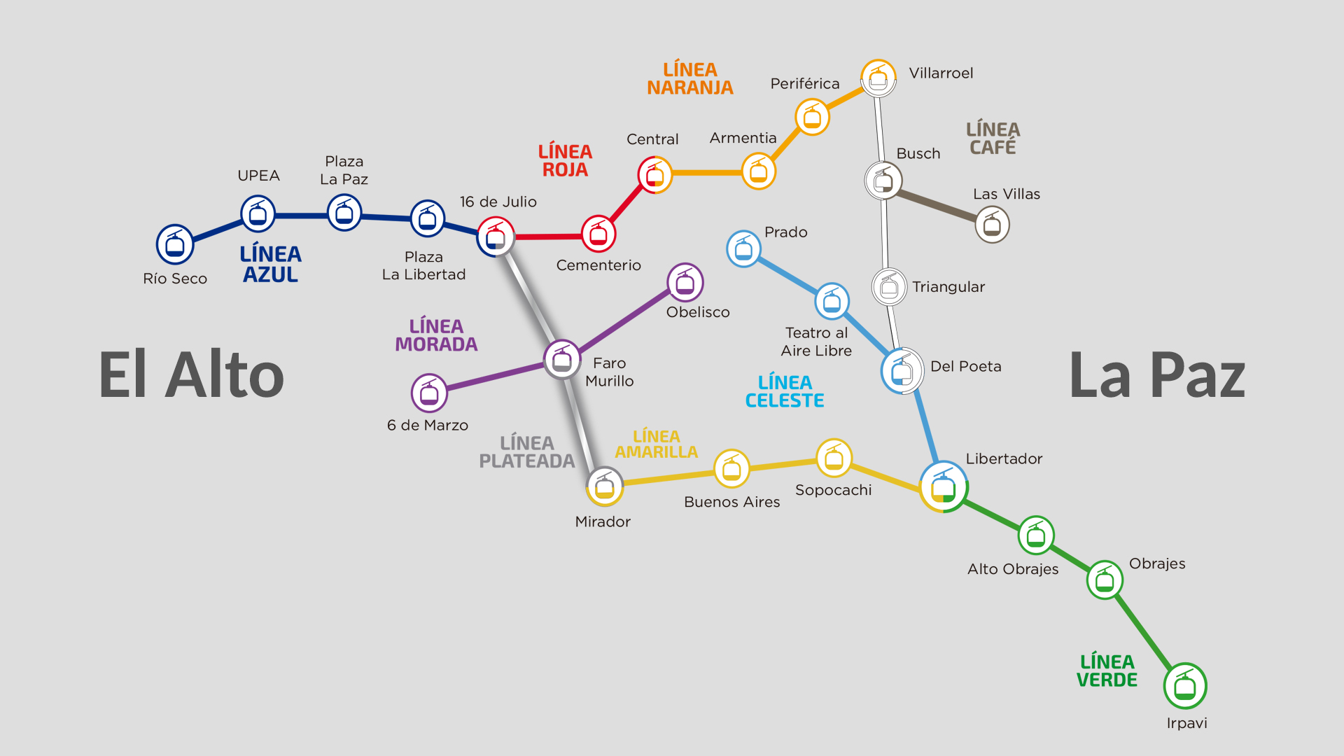 Die Teleférico verbindet beide Städte über jedes Gefälle, über Schluchten und Dächer hinweg, und ist für uns weit mehr als ein Verkehrsmittel. Sie bietet die besten Ausblicke auf das urbane Mosaik und wir bekennen uns, heute sind wir Liniensammler. Wir sammeln die Linien der Teleférico von El Alto und La Paz, sind unterwegs, nicht um anzukommen, sondern um jede Linie wenigstens einmal gefahren zu sein.
