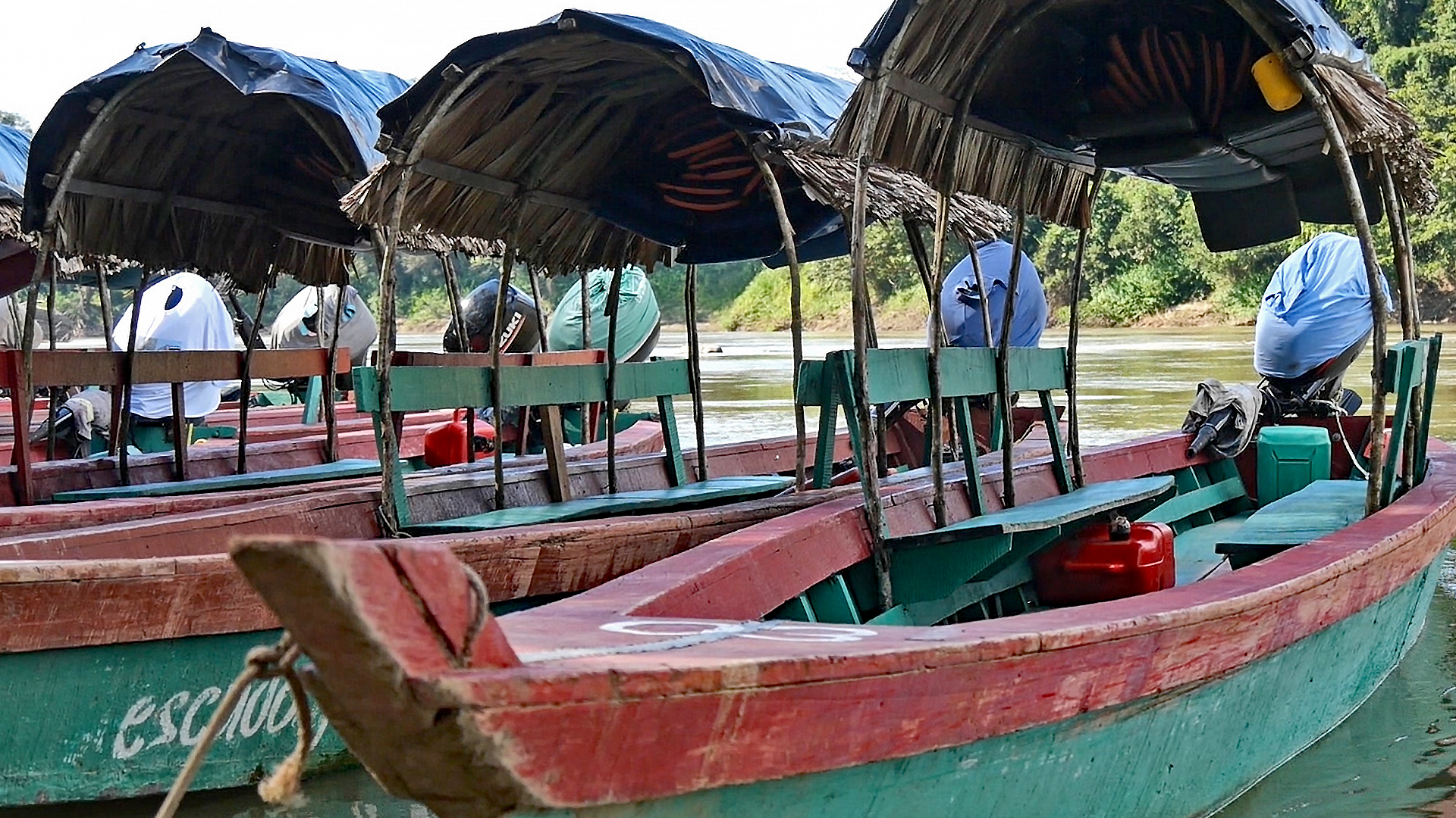Es ist heller Vormittag. Die Lanchas auf dem Fluss sind schmale, malerisch wirkende Holzboote mit einem gewölbten Palmwedeldach in der Mitte und einfachen Holzbänken rechts und links entlang der Bordwände. Wenn sie nicht, wie in den letzten zwei Jahren der Pandemie häufig, am Ufer dümpeln, dienen sie als Flusstaxis. Auf einem der Lanchas werden wir erwartet. Die zuständige Stelle hat aus einem kleinen Kreis von Bewerbern jemanden zum Bootsführer für unsere Fahrt benannt. Er steht im Heck. Seine linke Hand betätigt den Griff des Aussenborders. Mit niedriger Drehzahl hält er das Boot am sandigen Ufer. Wir steigen ein. Prüfend beobachtet er uns, die wir auf unserem Weg durch Chiapas in seinem Lancha gelandet sind. Noch während wir gegenseitig unsere Namen nennen und wir uns setzen, wendet Bo‘ola, so heisst er, das längliche Gefährt und lässt es von der Strömung mitnehmen.